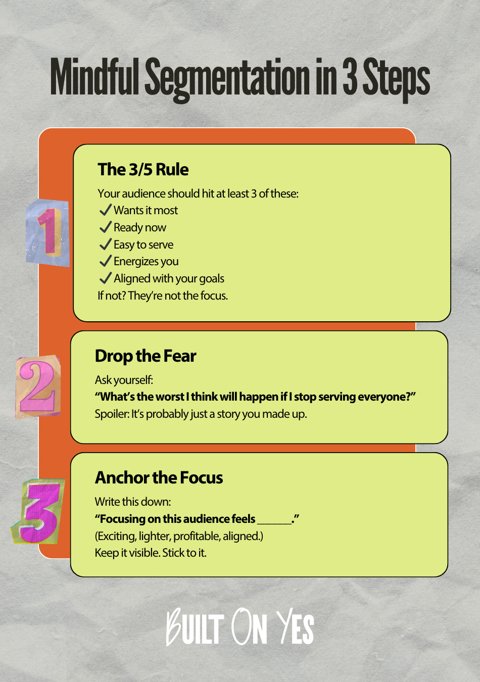 Segmentation isn’t about cutting people out, it’s about clearing space for the right ones. It’s building your biz to service with purpose, on purpose.